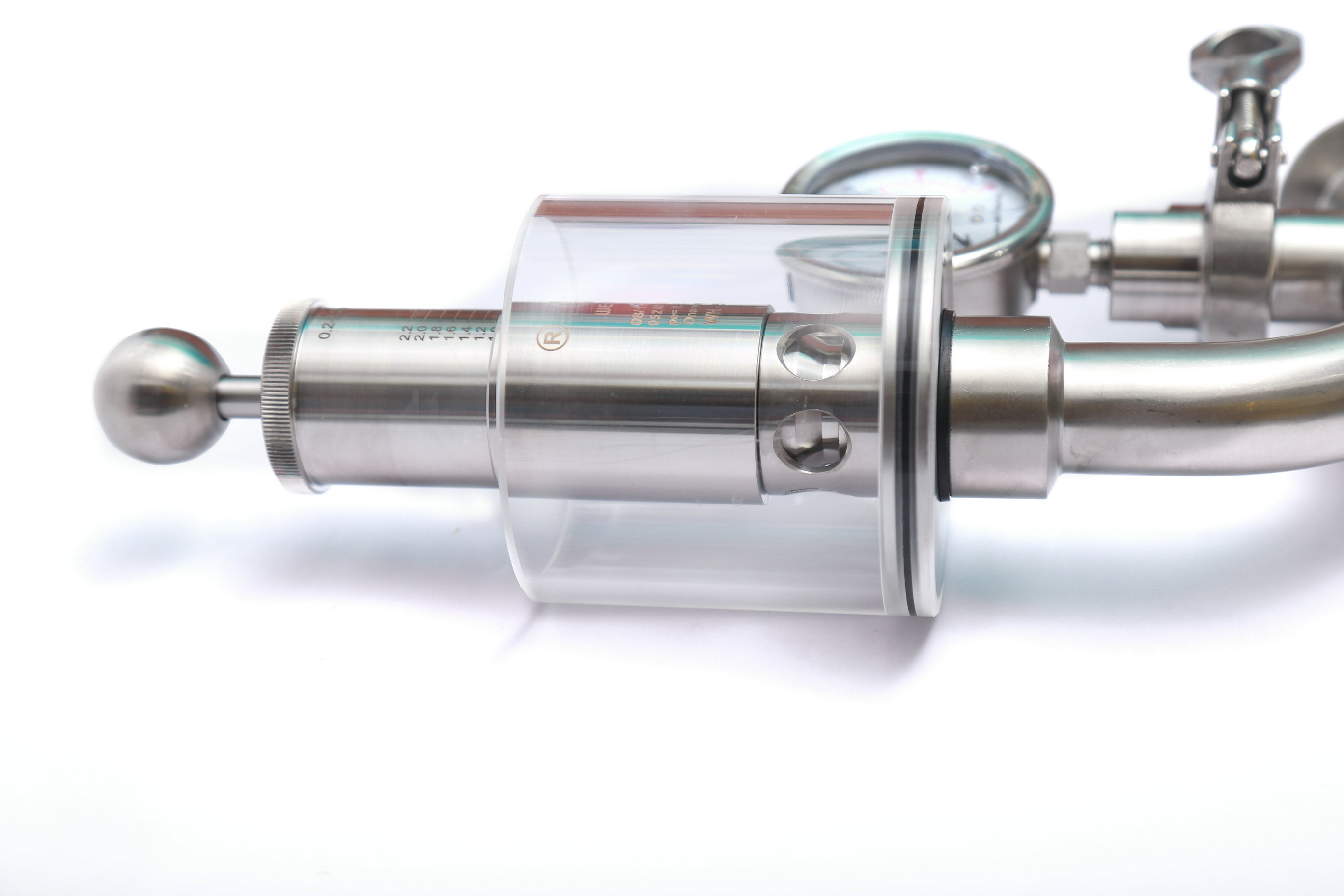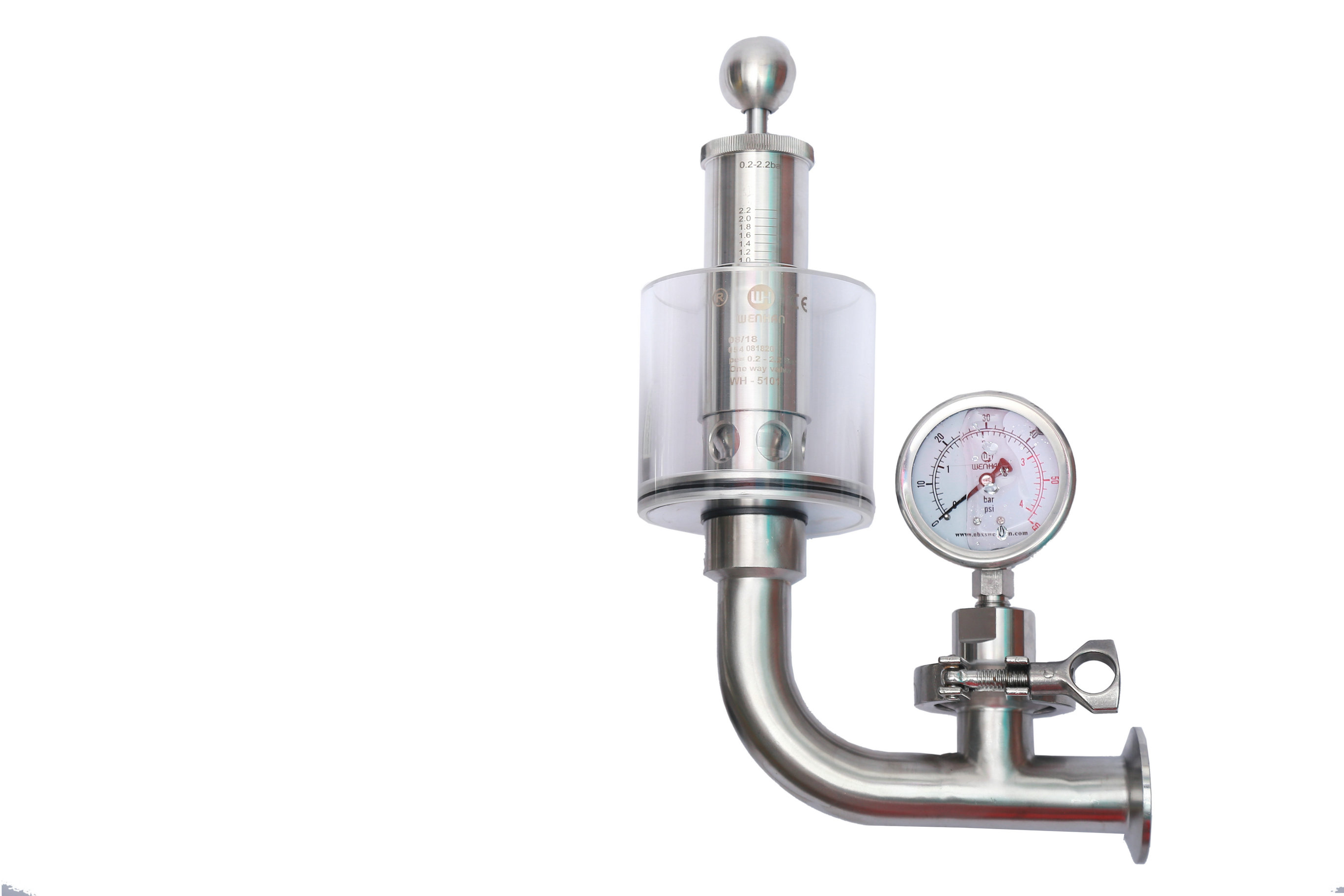 調節單向排氣閥保護容器壓力過高防爆作用,當壓力高于設定壓力(標準1BAR)時可以排氣,反之關閉,調節桿標上壓力刻度,所需壓力按刻度上調整,該閥門使用方便,刻度準確,玻璃罩加水能看到發酵效果,減少染菌。同時也可以滿足于各種生產工藝需求,適用于各種食品加工,啤酒,飲料以及制藥等各種工業領域。
