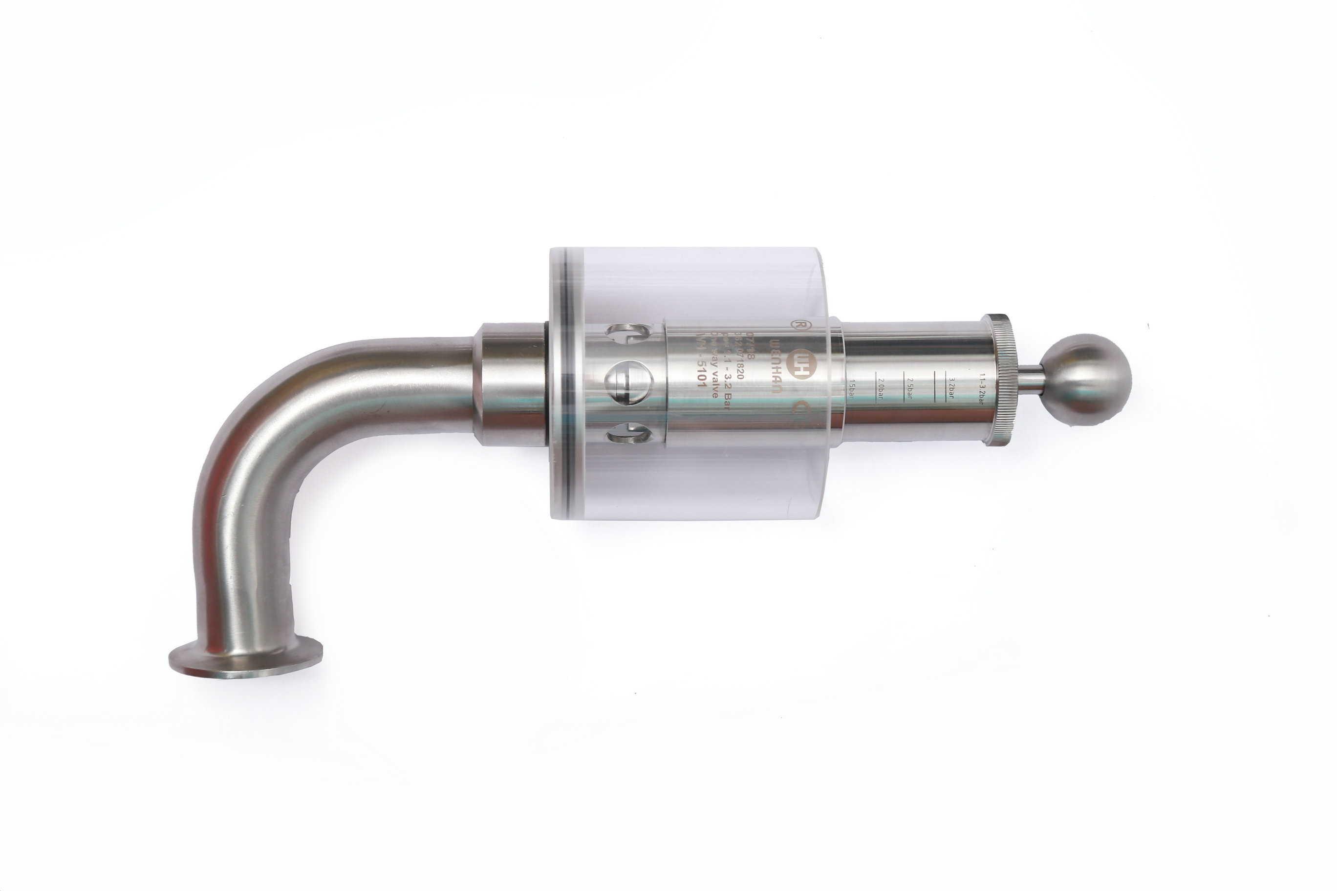 Wh-5101E 鏈接;快裝,卡箍。管徑;彎頭Φ32*1.5 . 內部設計壓力;由彈簧控制. 工作介質;氣體。手動式,旋鈕調節刻度壓力。